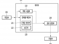 본 발명에 따르는 비행체를 위한 경로결정시스템에는, 측정된 장애물의 후방에 있는 참조점에서 전방으로 직선의 가상선분을 일정비율로 연장하고, 상기 가상선분의 끝점을 확장 장애물의 위치정보로 제공하는 확장 제어부가 포함되고, 상기 일정비율은, 상기 가상선분의, 상기 참조점으로부터 상기 장애물의 적어도 하나의 지점까지의 거리에 대하여, 상기 참조점으로부터 상기 확장장애물까지의 적어도 하나의 지점까지의 거리에 대한 일정비율이고, 상기 일정비율은 1을 …