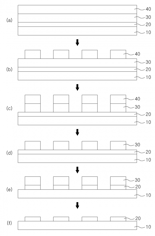 본 발명은 그래핀과 포토레지스트 사이에 크롬층을 삽입하여 잔류층 문제를 해결할 수 있다. 본 발명의 그래핀 나노 리본은 100~200nm 사이즈로 구현할 수 있으며, 또한, 대면적으로 나노 패턴을 저비용, 단시간 공정으로 구현할 수 있다.
