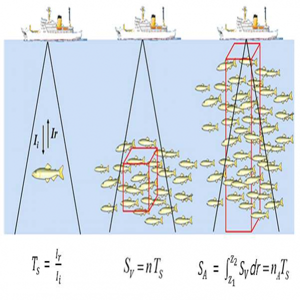 양식어류 계측 시스템은 음향센서를 이용하여 양식장 내의 어류들의 크기 및 산란 강도(scattering strength)를 측정하는 측정부, 양식장의 크기 및 각각의 어류의 어종에 따른 고유값에 따라 파라미터를 설정하는 파라미터 설정부, 상기 측정부가 측정한 산란 강도에 관한 측정 데이터 및 사이 파라미터 설정부가 설정하는 파라미터 데이터를 저장하는 데이터 저장부, 상기 측정 데이터 및 상기 파라미터 데이터를 이용하여 각각의 어류가 갖는 고유의 표적 강도(Target Strength), 단위 체적당 상대적 산란 강도(Volume back scattering strength), 적분 체적 산란 강도(Area back scattering strength)를 연산하고, 상기 적분 체적 산란 강도를 상기 표적 강도로 나눈 값으로 양식장 내의 어류 개체수를 연산하는 측정값 연산부 및 상기 측정부에서 측정하는 데이터 및 상기 측정값 연산부에서 연산하여 얻어지는 데이터를 실시간으로 표시하는 표시부를 포함한다.