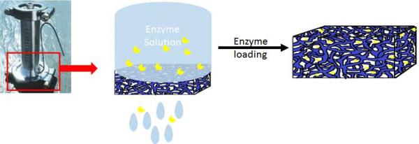 본 발명의 여러 구현예에 따르면, 전량 여과방식(Dead-end)을 이용하여 항생 물질의 합성 반응을 촉진할 수 있는 효소를 다공성 막에 안정적으로 고정시킬 수 있다.