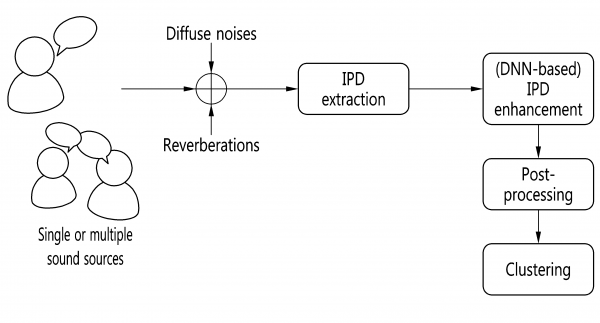 심층 신경망 기반의 방향각 추정 방법이 개시된다. 본 발명의 실시 예에 따른 심층 신경망 기반의 방향각 추정 방법은, 다 채널 마이크를 통하여, 음원으로부터 생성되고 잡음 및 잔향 중 적어도 하나에 의해 왜곡된 오디오 신호를 수신하는 단계, 상기 오디오 신호의 채널 간 위상 차를 획득하는 단계, 상기 위상 차를 학습된 딥 러닝 모델에 제공하여 깨끗한 오디오 신호의 위상 차를 추정하는 단계, 및, 상기 추정된 위상 차를 이용하여 상기 음원의 방향각을 추정하는 단계를 포함한다.