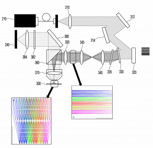 본 실시예의 일 측면에 의하면, 기 설정된 파장대역 내에서 하나의 파장을 갖는 레이저를 조사하는 광원부와 상기 광원부로부터 조사된 레이저를 인가받아 서로 다른 위상값을 갖는 패턴을 생성하고, 생성된 패턴을 파장에 따라 이격시켜 샘플로 조사하는 광학계와 상기 광학계를 거쳐 샘플로부터 반사된 광을 수광하는 수광부와 상기 광원부, 광학계 및 수광부의 동작을 제어하며, 상기 수광부가 수광한 광의 간섭 패턴을 분석하여 샘플의 성질을 분석하는 제어부를 포함하는 것을 특징으로 하는 현미경 시스템을 제공한다.